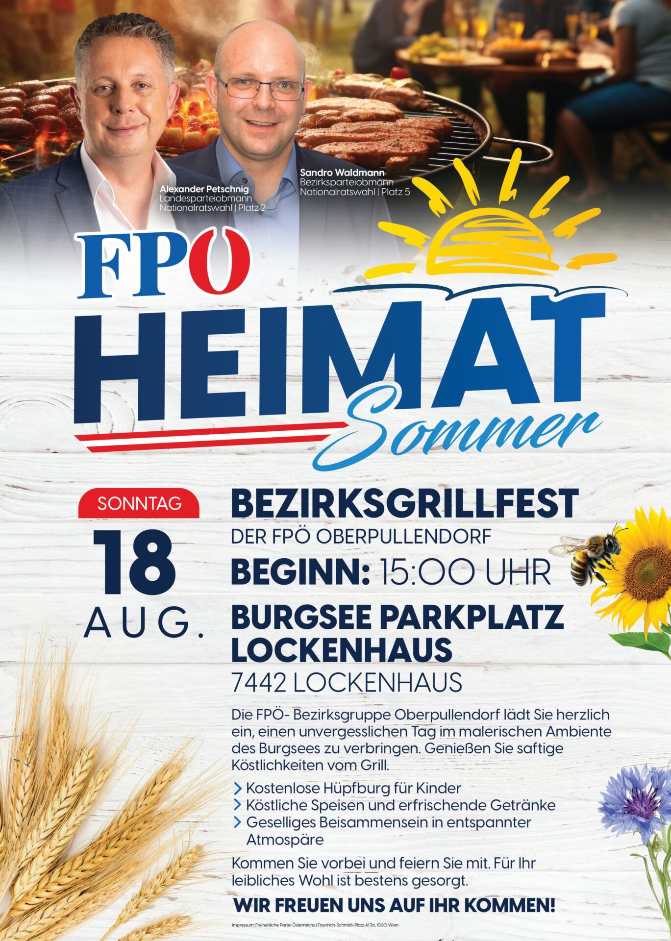 Die FPÖ-Bezirksgruppe Oberpullendorf lädt Sie herzlich ein zu einem unvergesslichen Tag im malerischen Ambiente des Burgsees Lockenhaus. Freuen Sie sich auf saftige Köstlichkeiten vom Grill, zubereitet von BBQ Western Grill.
